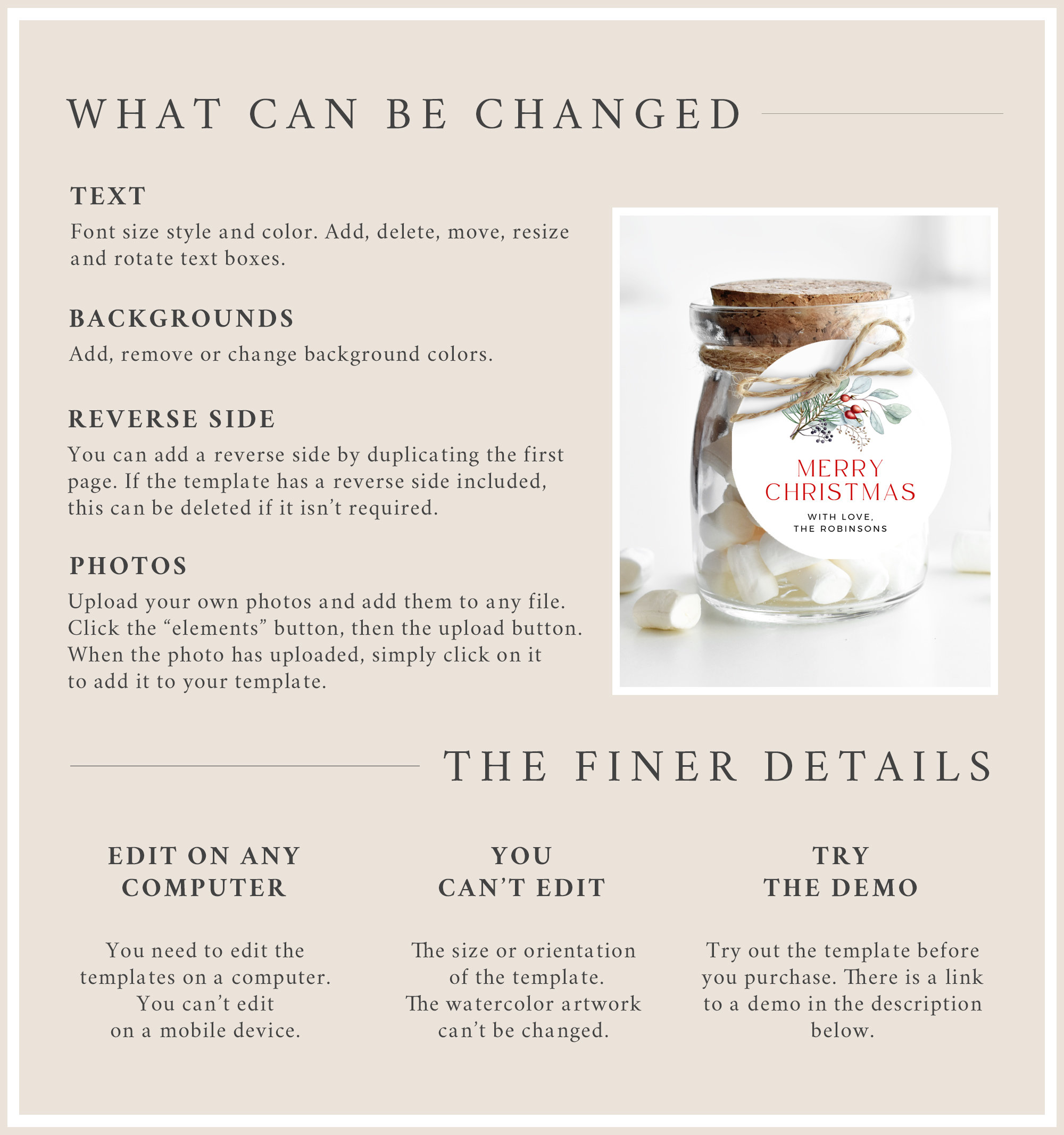 It can be fully edited using TEMPLETT which is a fully customizable template editor that allows you to quickly and easily customize digital templates. After your purchase you will get instant access to your template(s) via an emailed link. No software to install or fonts to download.