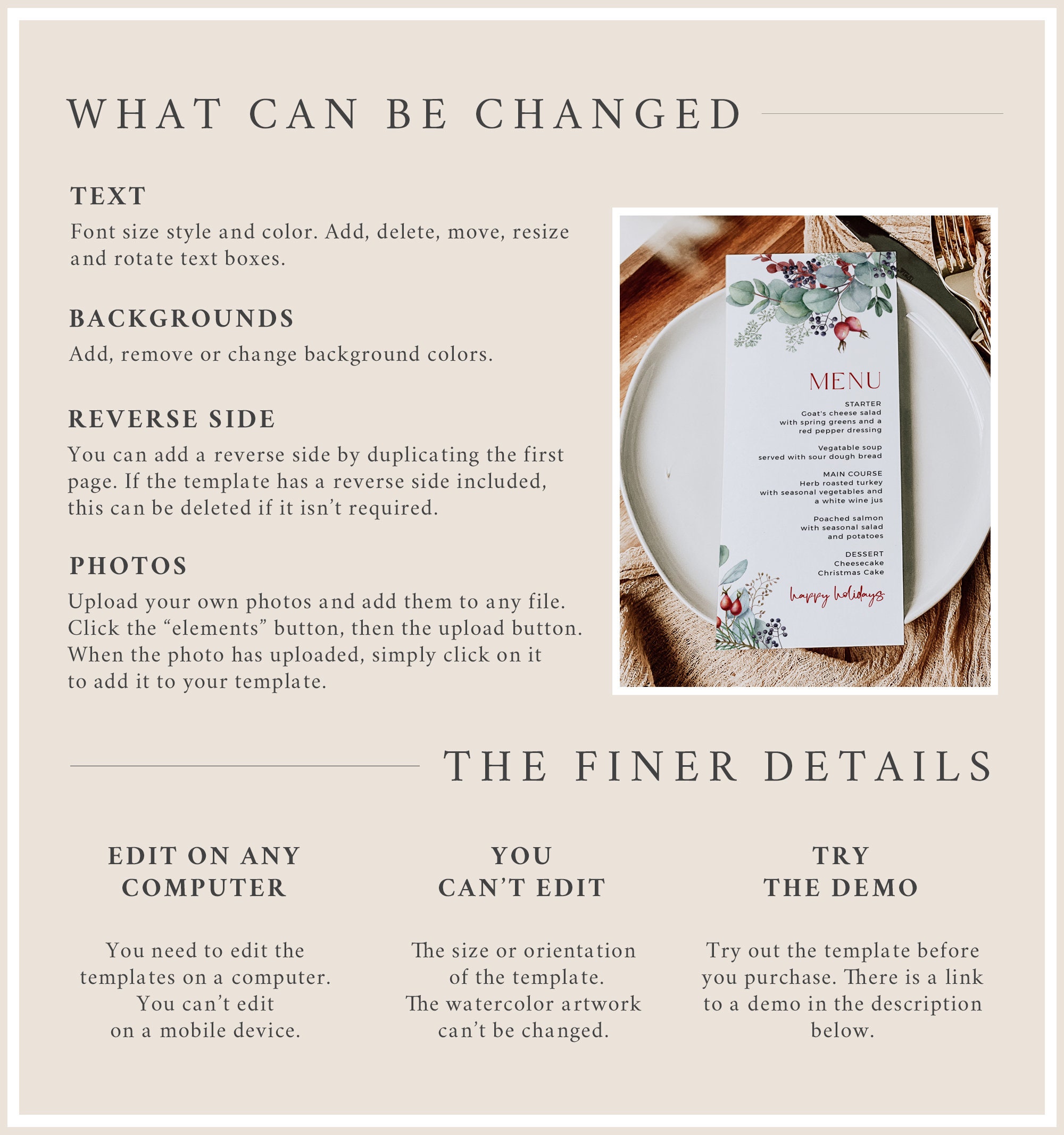 It can be fully edited using TEMPLETT which is a fully customizable template editor that allows you to quickly and easily customize digital templates. After your purchase you will get instant access to your template(s) via an emailed link. No software to install or fonts to download.