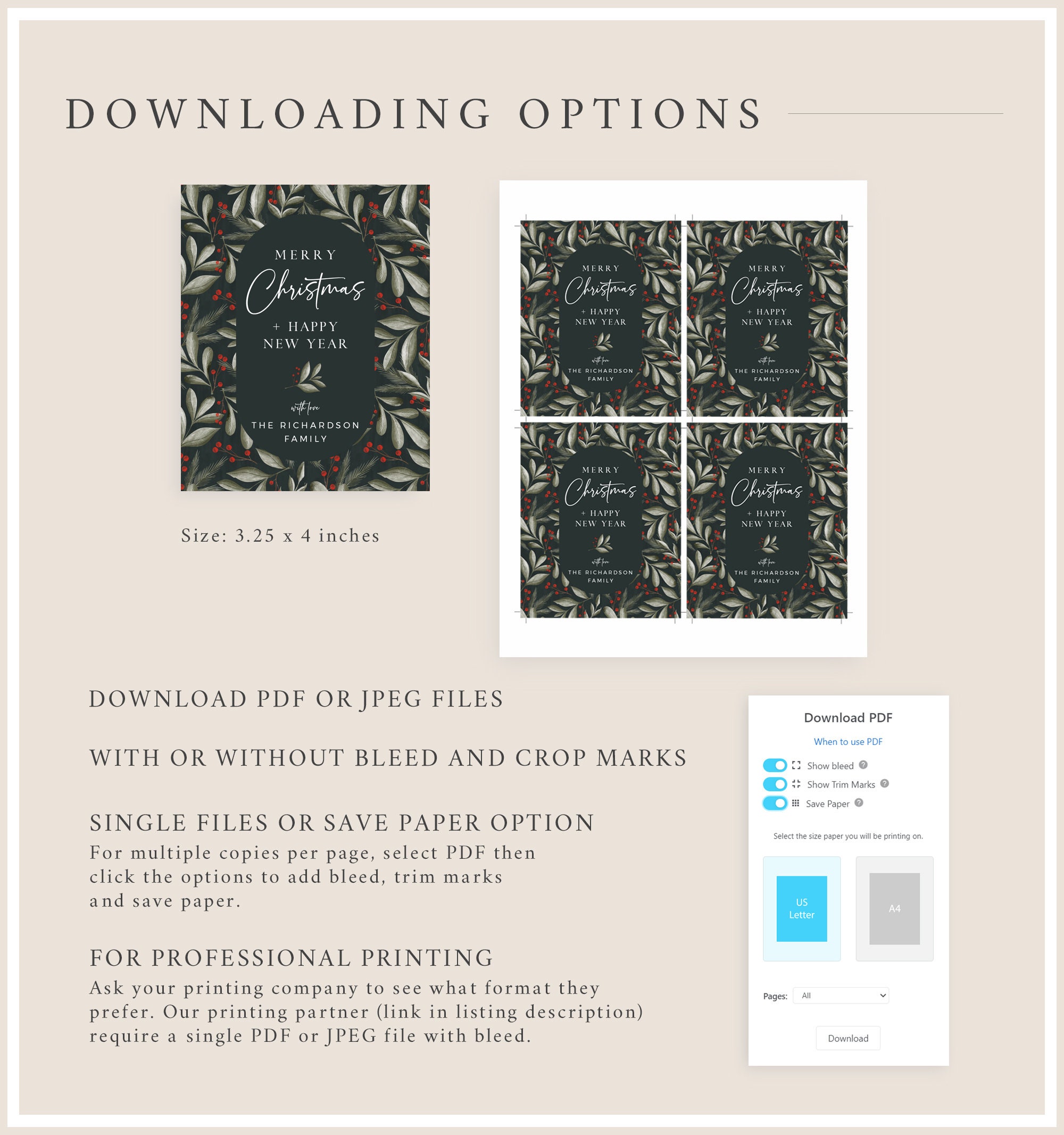 Our templates can also be printed at home or at a local print shop such as Fed Ex, Walgreens, Office Depot, Staples etc.