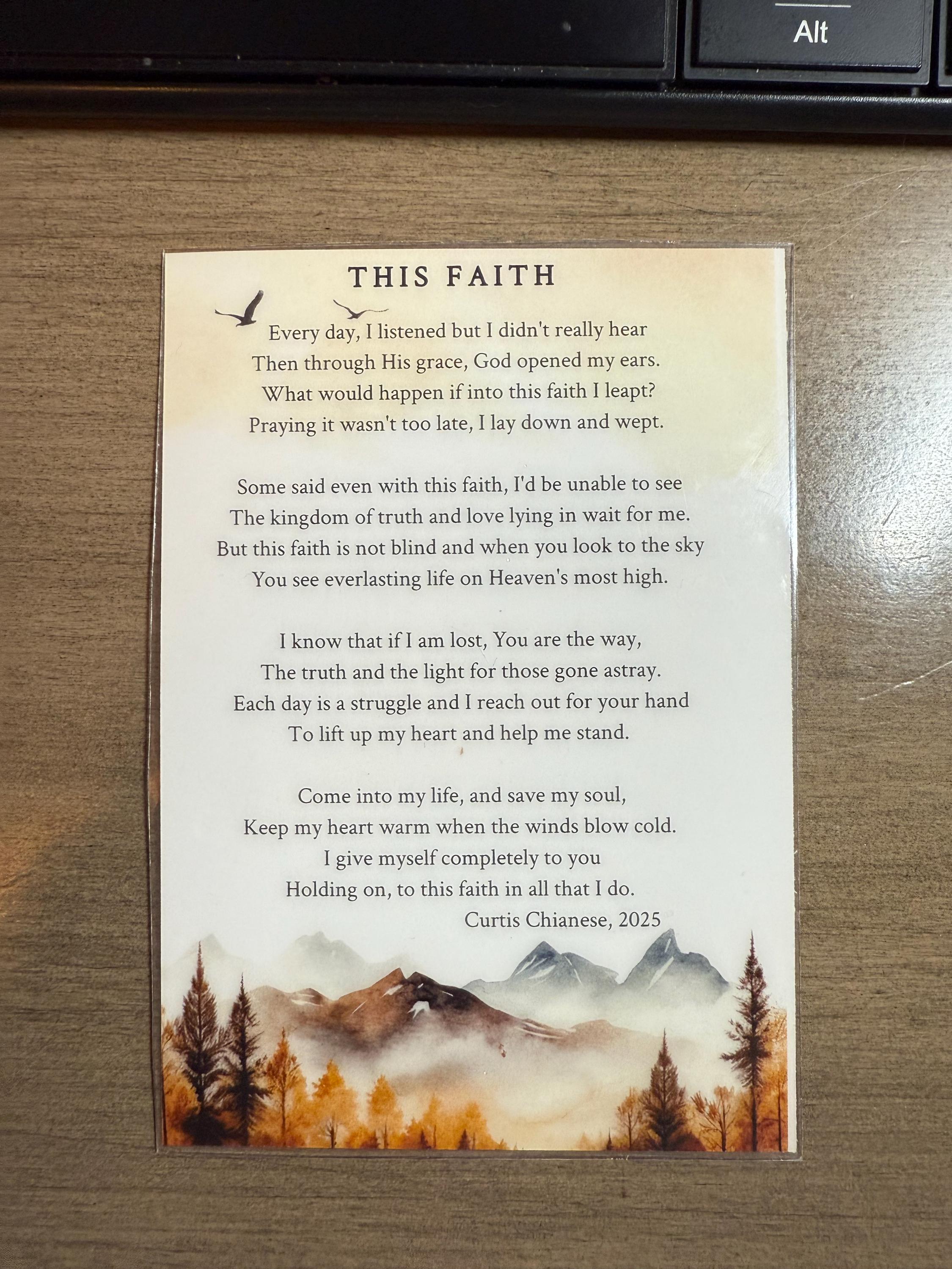 Editable prayer card template that has a woodland design with a modern font and space for a photo. It has a muted fall color palette and the forest and mountain scene look pretty on this man's prayer card. It has the convenience of being an instant download and it can be printed at home or a local print shop. It is easy to edit and a range of matching items are available.