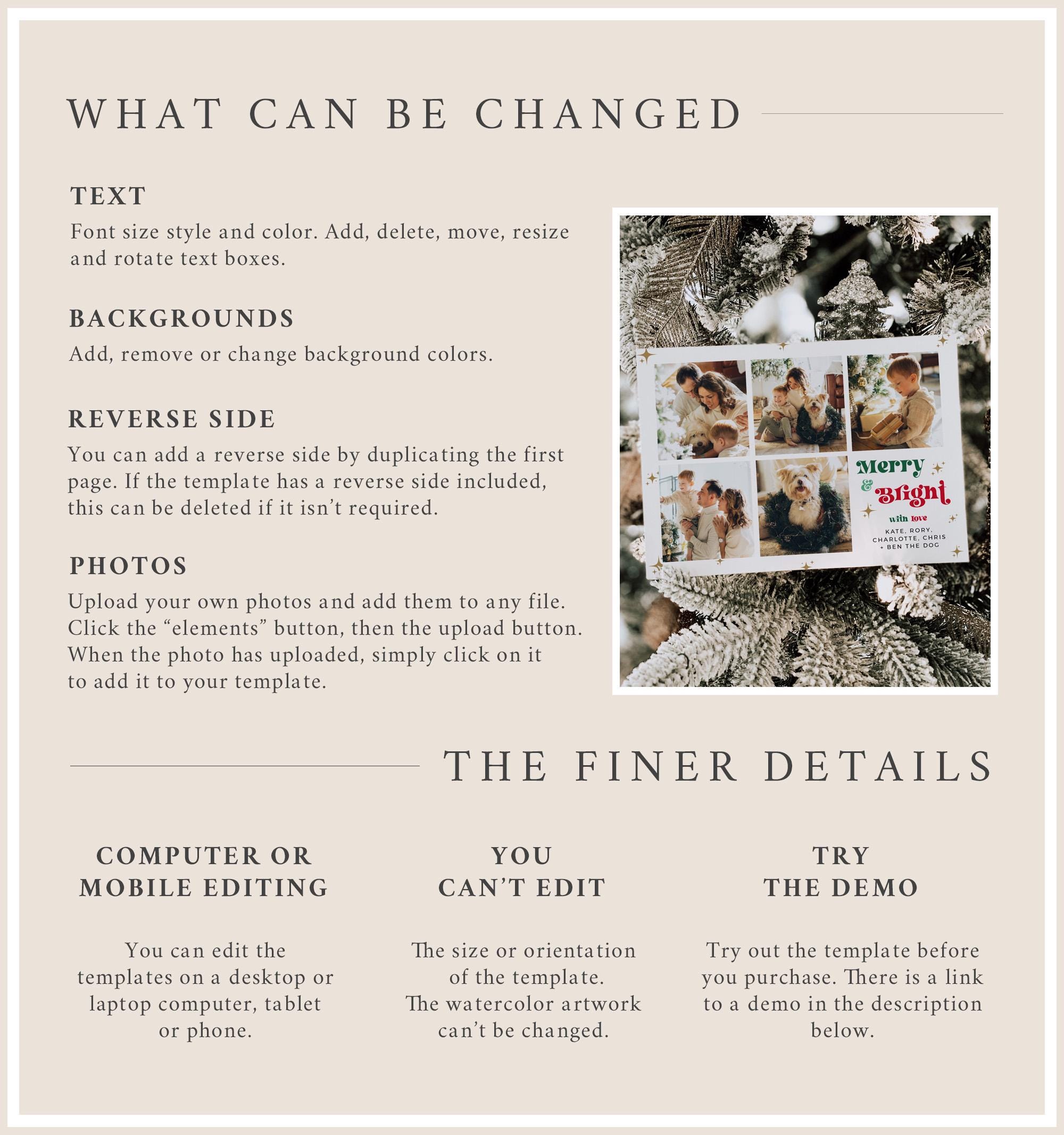 It can be fully edited using TEMPLETT which is a fully customizable template editor that allows you to quickly and easily customize digital templates. After your purchase you will get instant access to your template(s) via an emailed link. No software to install or fonts to download.