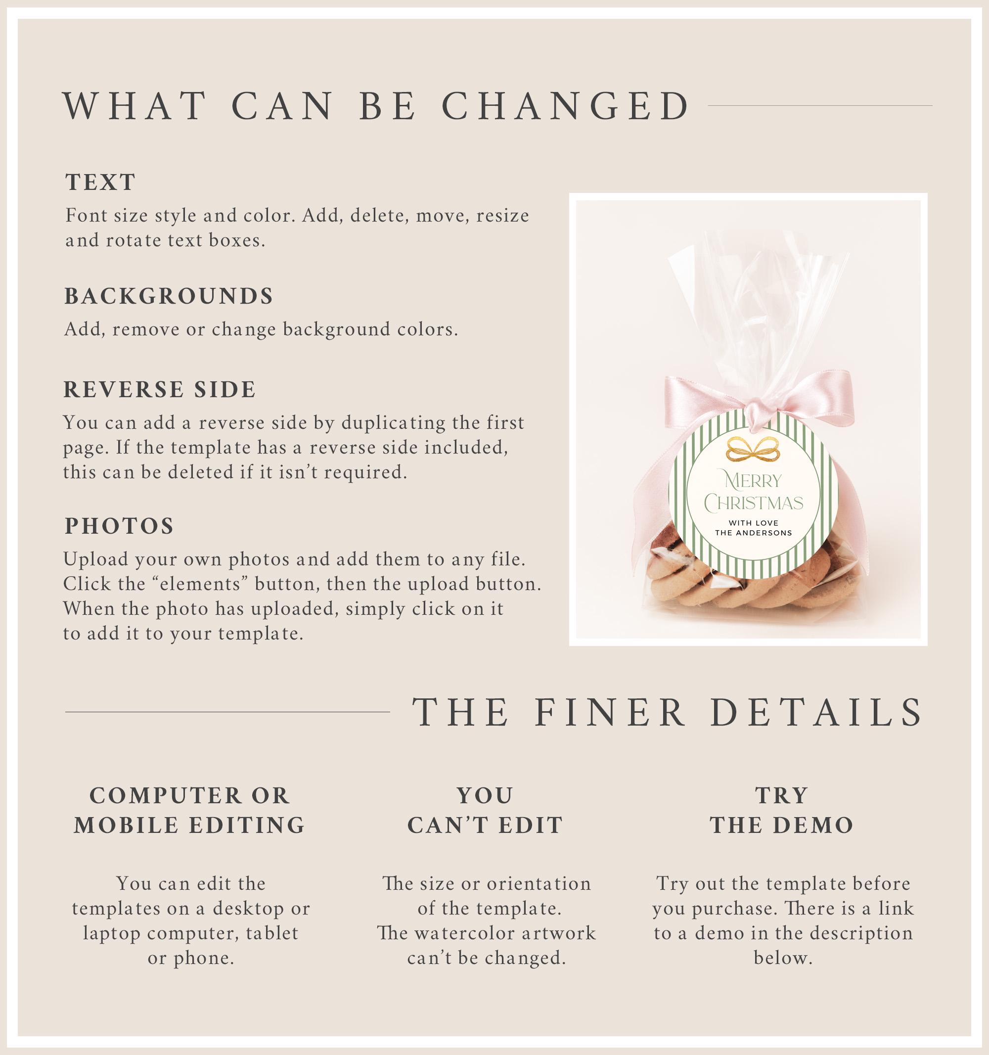 PLEASE NOTE: There is a very thin trim line all around the tag. This template is NOT formatted for any pre-cut/branded tags or labels - you need to print and trim or use a circle punch.