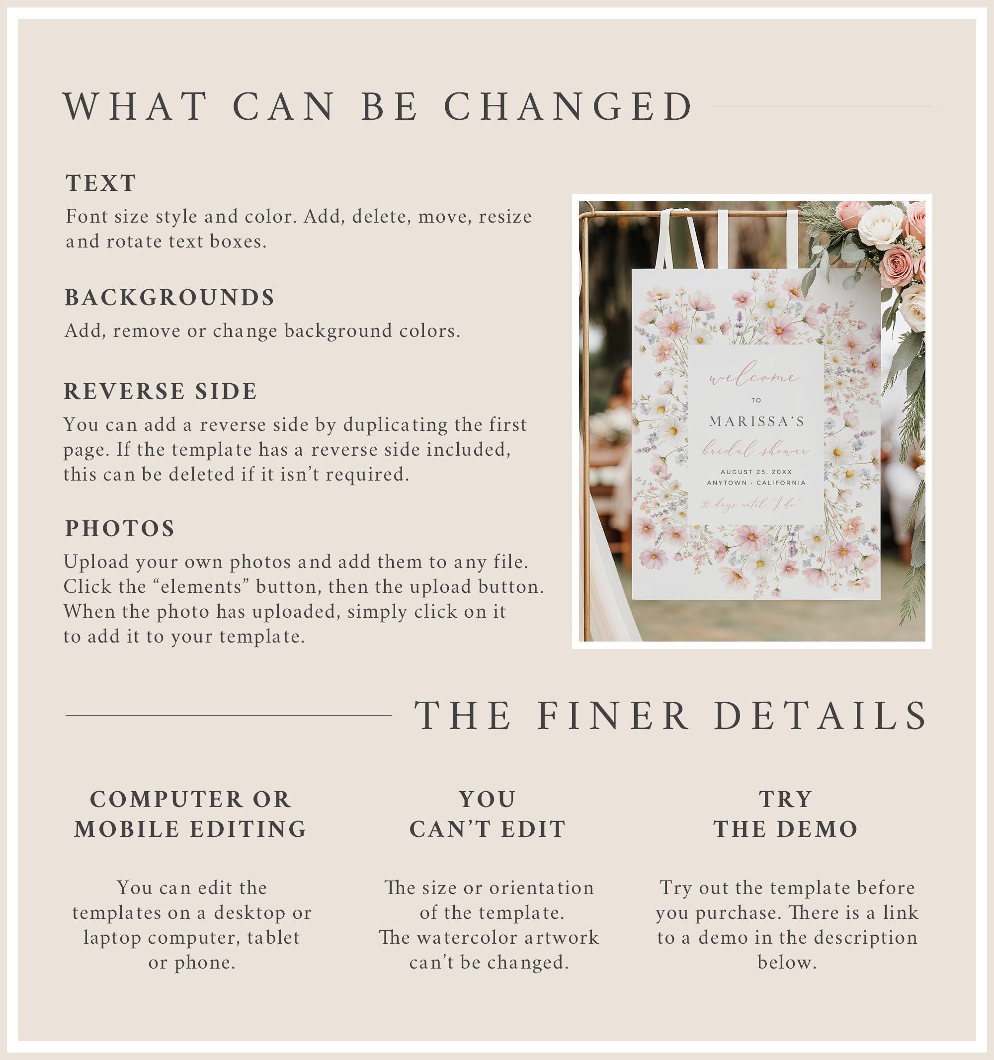 It can be fully edited using TEMPLETT which is a fully customizable template editor that allows you to quickly and easily customize digital templates. After your purchase you will get instant access to your template(s) via an emailed link. No software to install or fonts to download.