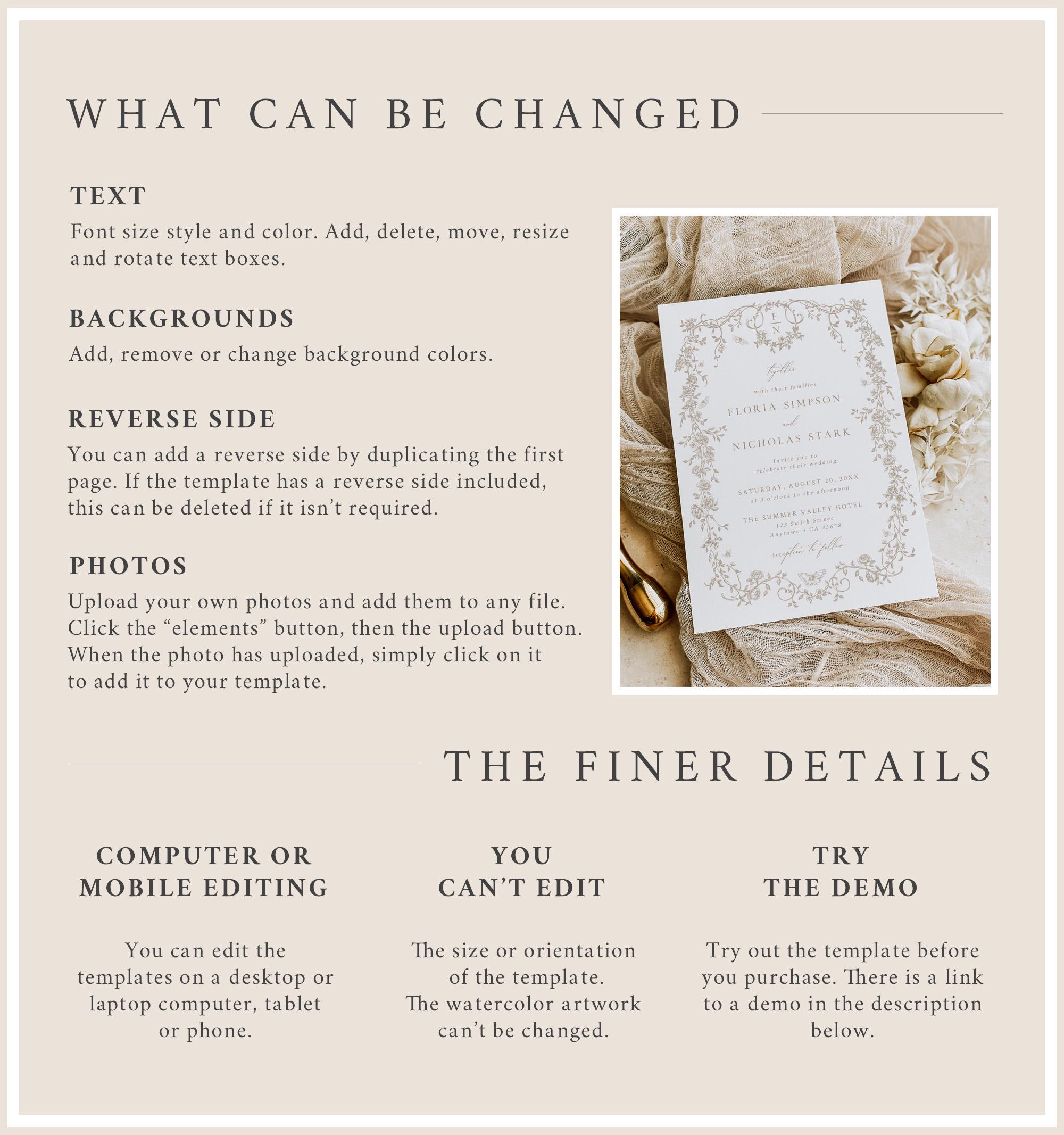 It can be fully edited using TEMPLETT which is a fully customizable template editor that allows you to quickly and easily customize digital templates. After your purchase you will get instant access to your template(s) via an emailed link. No software to install or fonts to download.