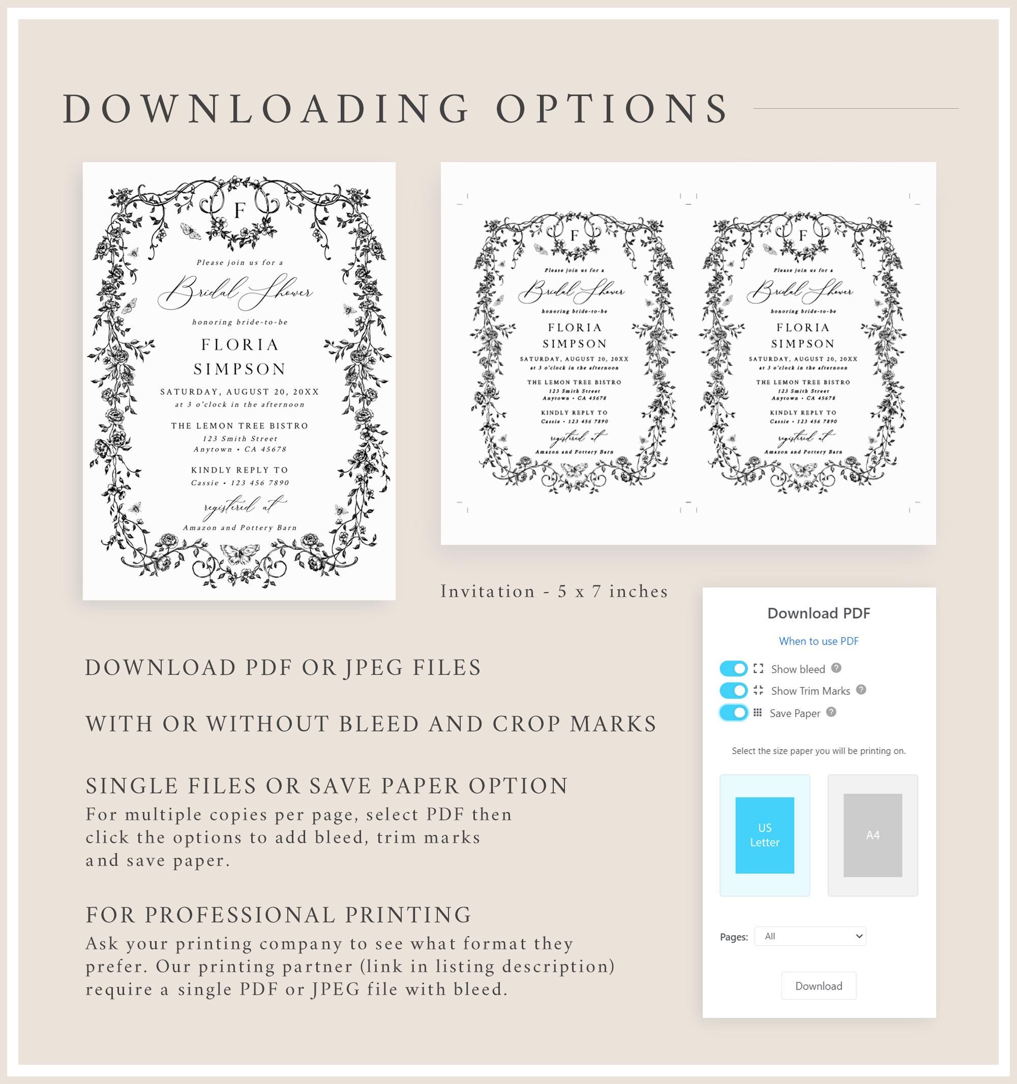 Our templates can also be printed at home or at a local print shop such as Fed Ex, Walgreens, Office Depot, Staples etc.