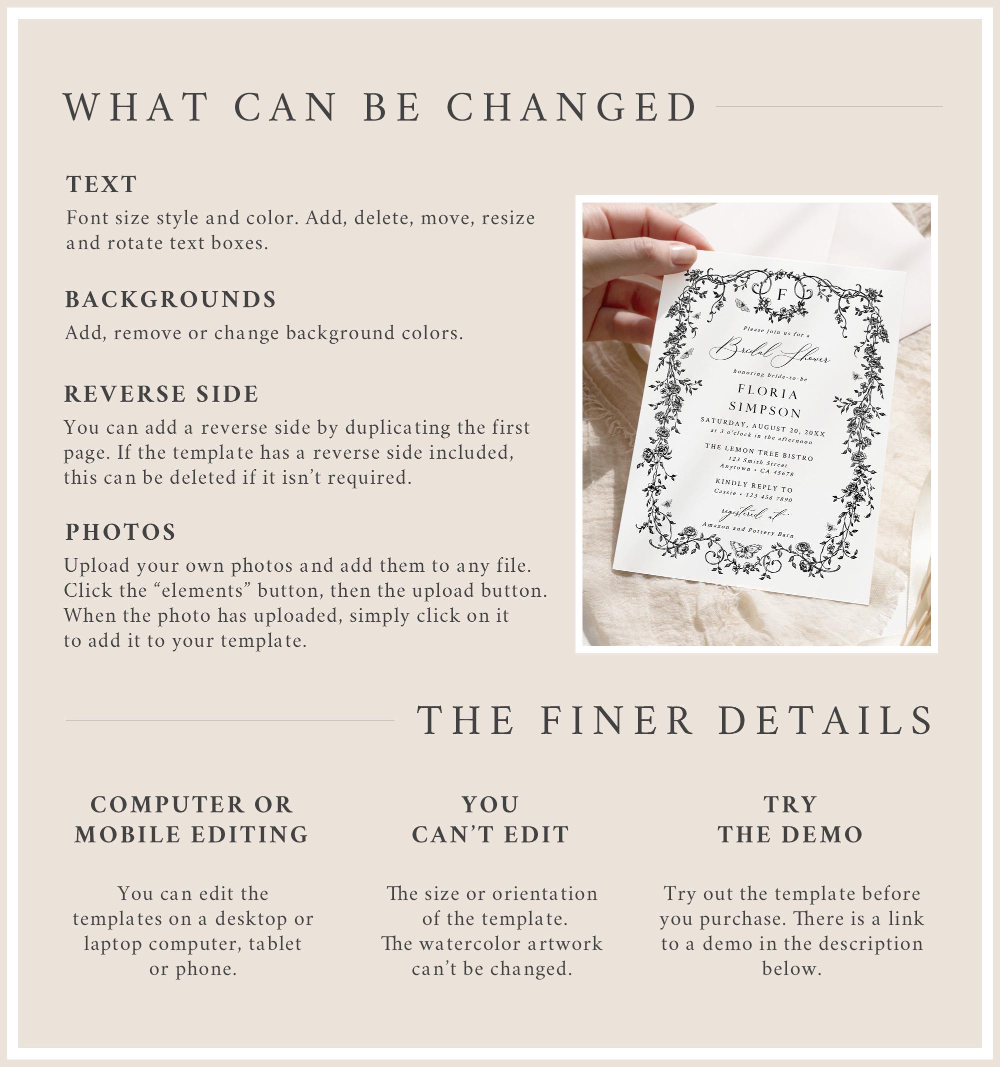 It can be fully edited using TEMPLETT which is a fully customizable template editor that allows you to quickly and easily customize digital templates. After your purchase you will get instant access to your template(s) via an emailed link. No software to install or fonts to download.