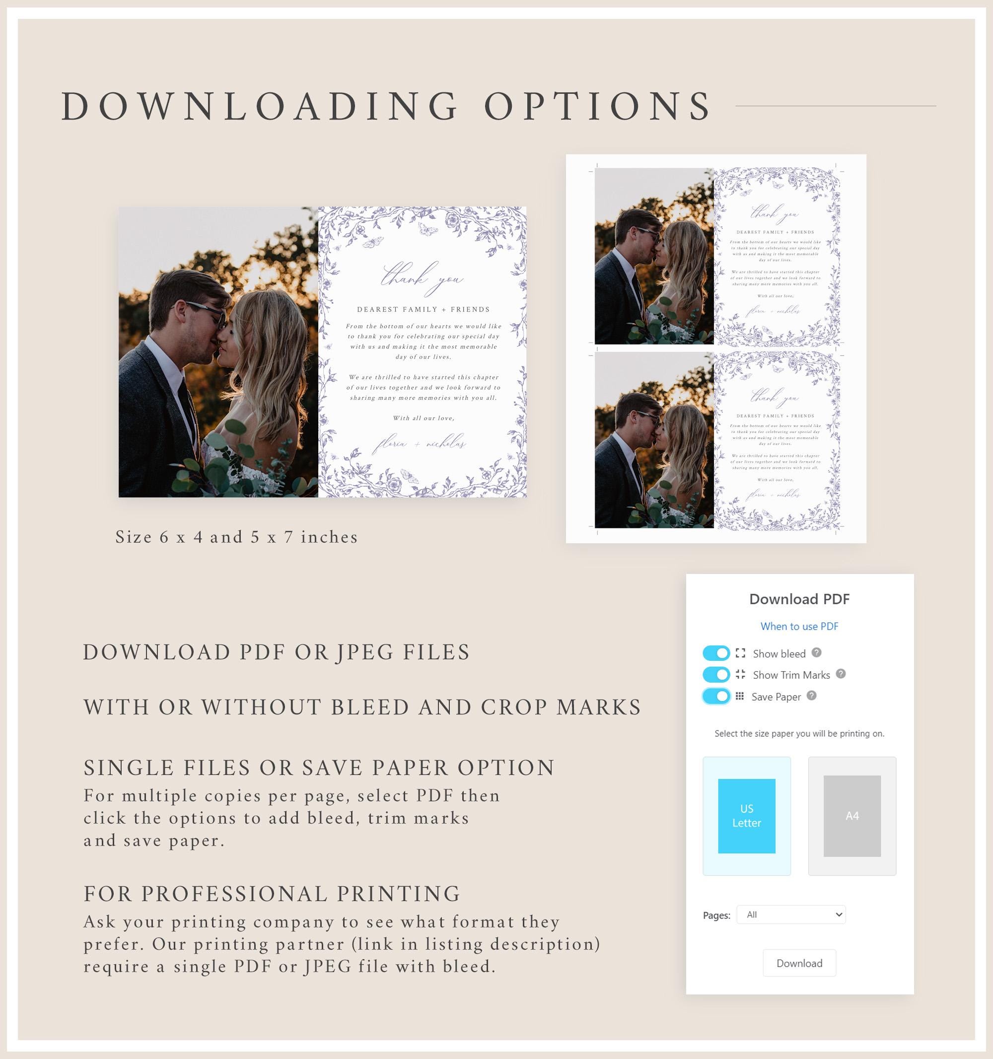 Our templates can also be printed at home or at a local print shop such as Fed Ex, Walgreens, Office Depot, Staples etc.